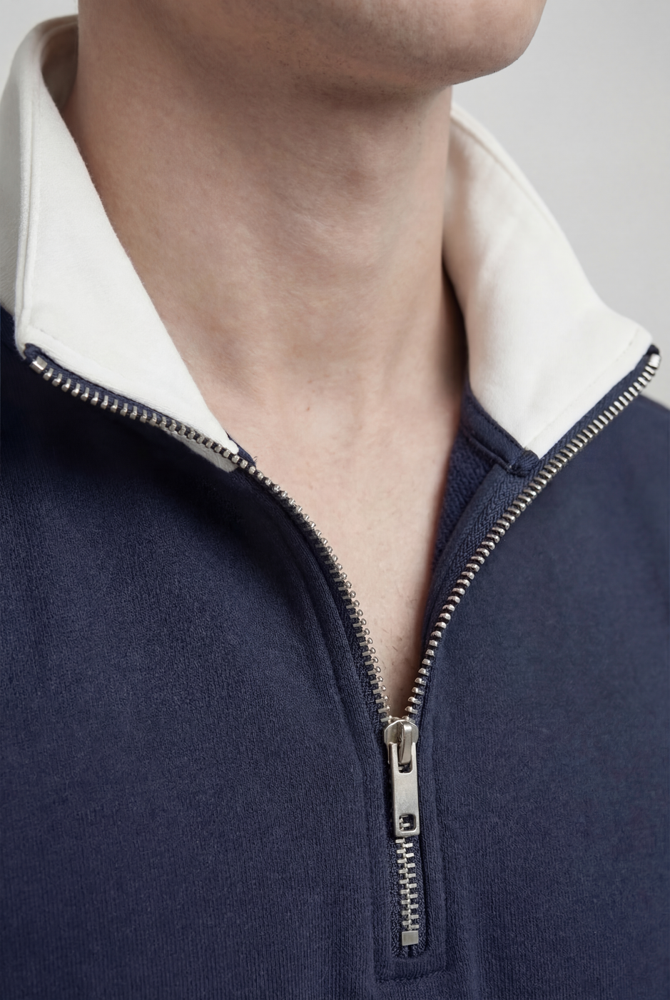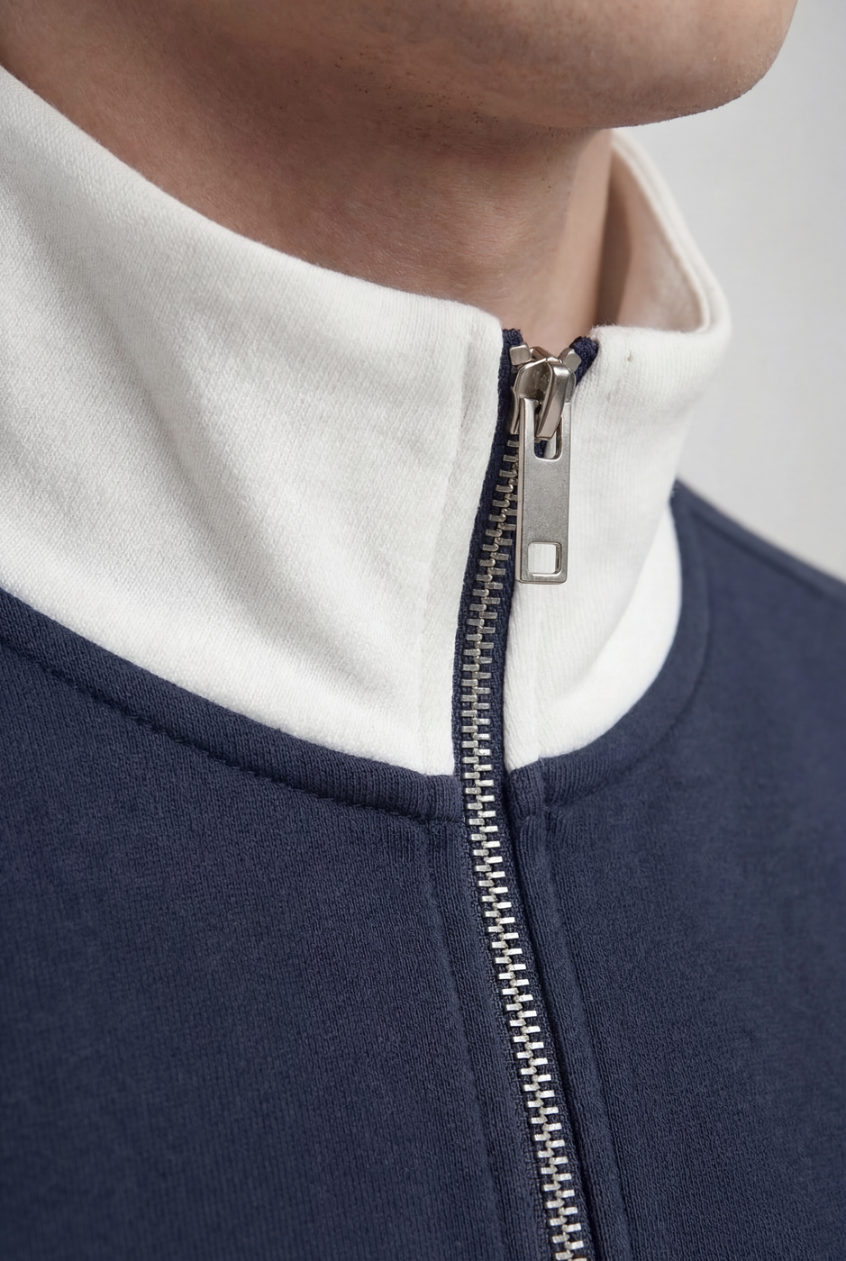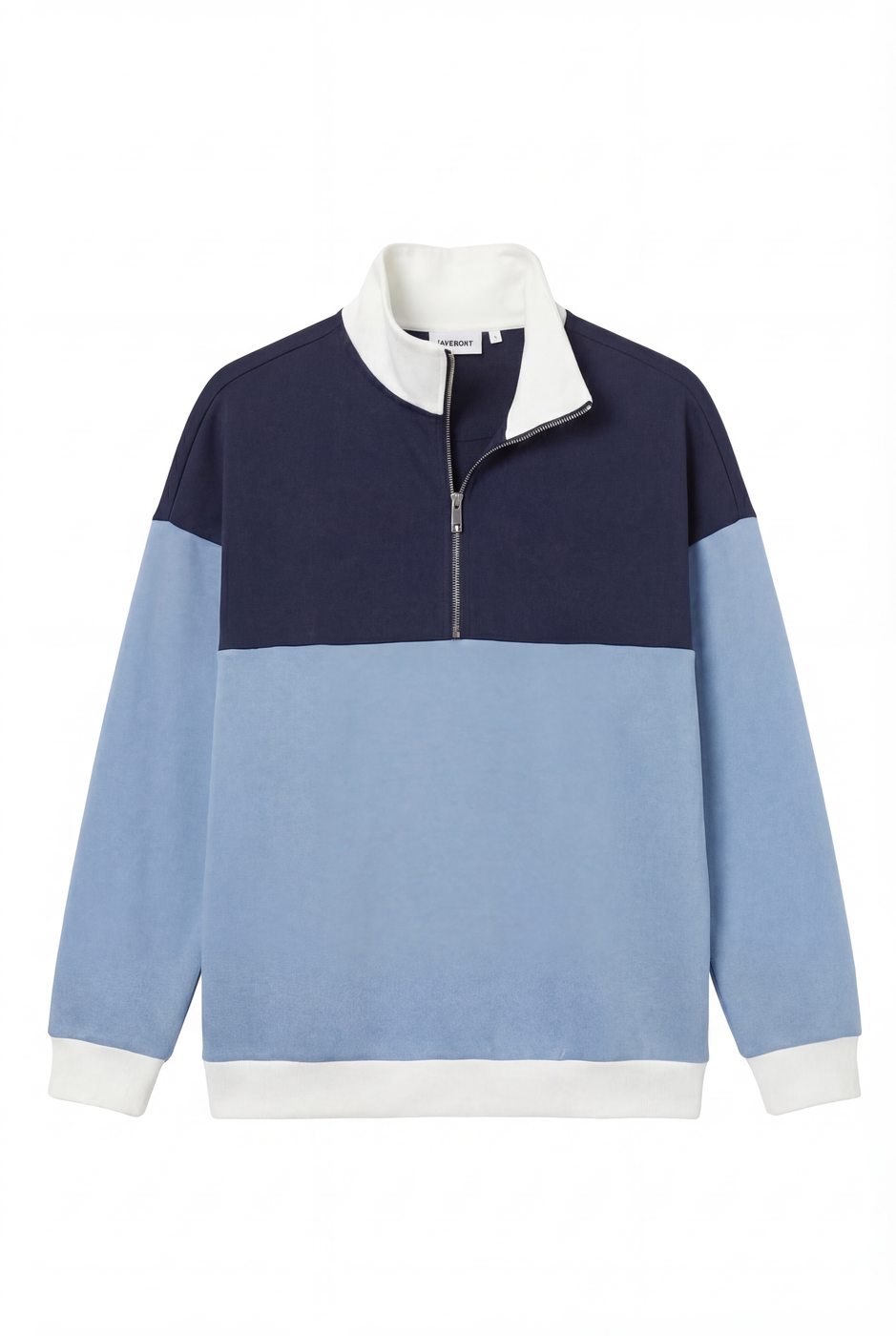 M0028 (unisex) Colorblock zip sweatshirt with a bold, structured collar and halfzip front. Clean lines meet playful contrast—ideal for uniforms or standout streetwear. Fabric and colors can be customized per client request. Embroidery and print available as add-ons. Print Contact Us